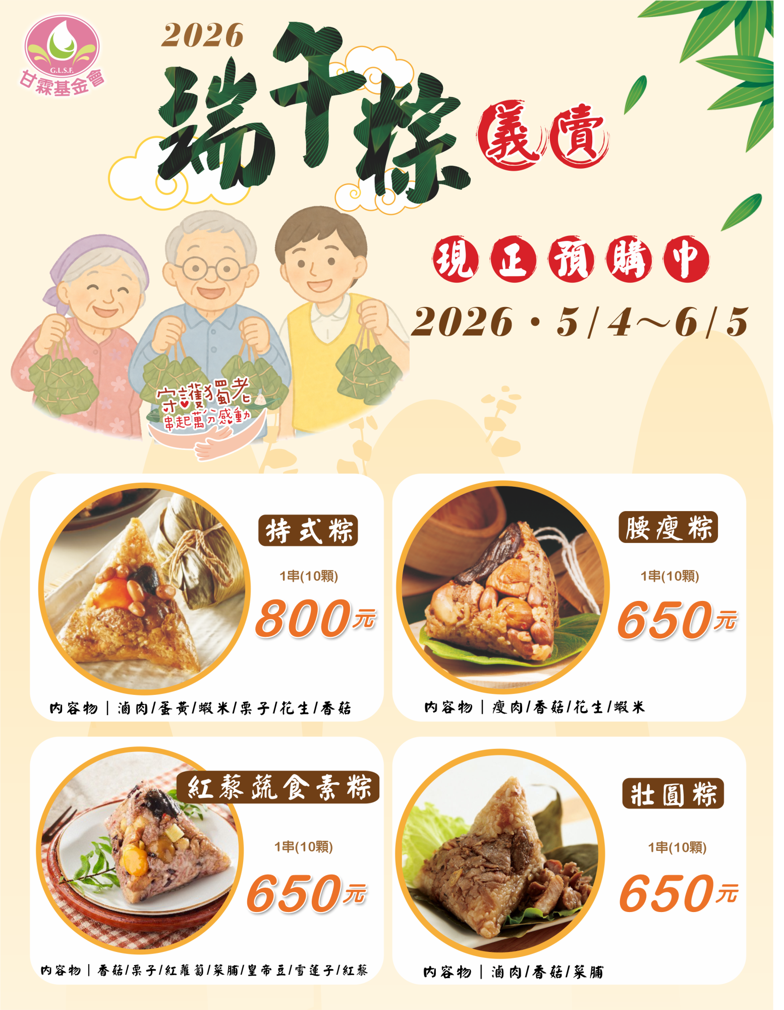 2026端午,我們用端午粽義賣,傳遞關懷與希望。邀請您一起參與,讓愛不孤單,溫暖每個需要被照顧的角落。